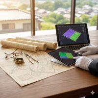 このように、事業のフェーズに合わせて適切な図面を選択することが、無駄なコストを抑え、プロジェクトをスムーズに進めるコツです。「とりあえず全部確定させよう」とすると時間も費用もかかりますが、まずは「現況(仮測量)」で全体像を掴む。それが正しい判断を支える一歩になります。